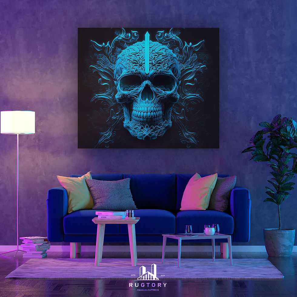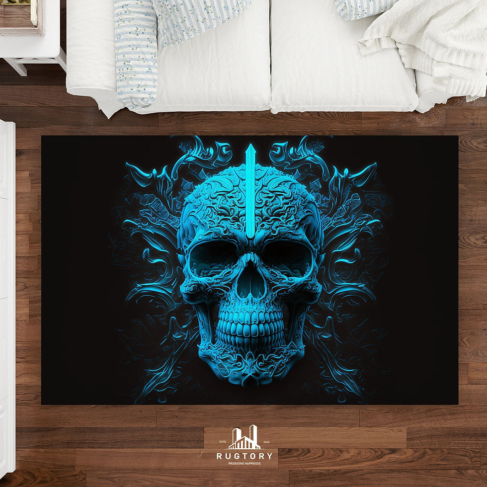 Blue Neon Skull Rug